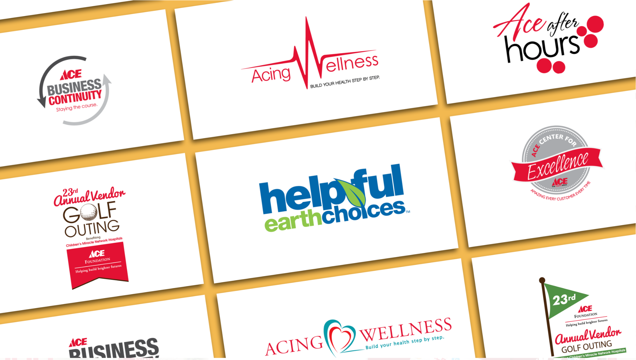 Ace Hardware Corp – Created logo concepts for various corporate initiatives and events, including the Annual Vendor Golf Outing and Helpful Earth Choices, aligning each with Ace's brand identity.
